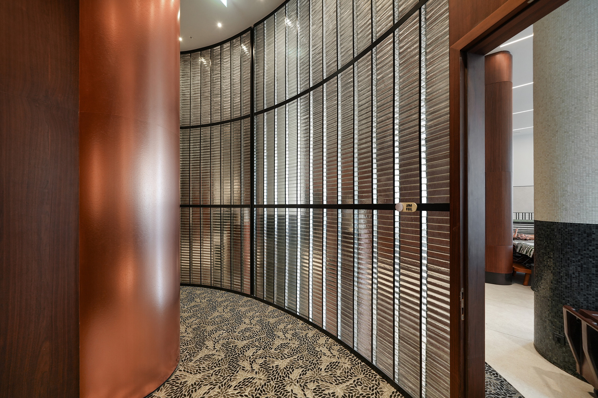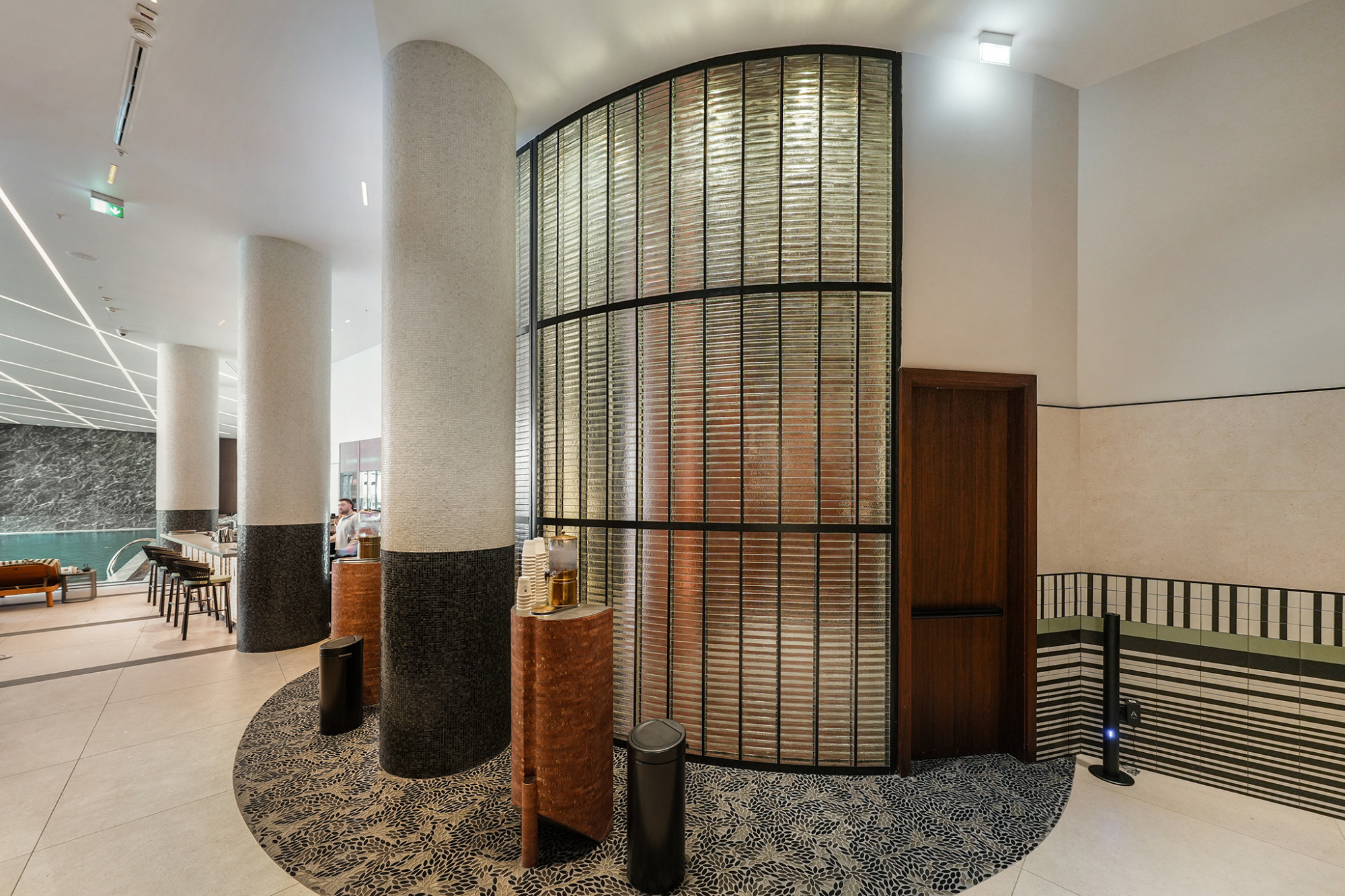 In the hotel’s interior spaces, ALL-P GROUP used glass blocks. This solution emphasized the design’s bright, light, and trendy visual effect. Glass blocks can be found both as full walls and as interior elements and furniture features.